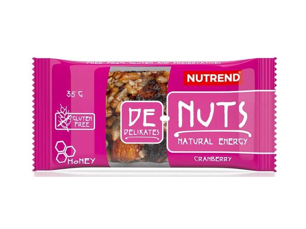 Príchuť brusnica: presladzované brusnice 24 % (brusnice, cukor, slnečnicový olej), mandle, arašidy, slnečnice, glukózový sirup, sezam, fruktóza, med 4 %, emulgátor repkový lecitín. Výrobok obsahuje alergény mandle, arašidy, sézam.